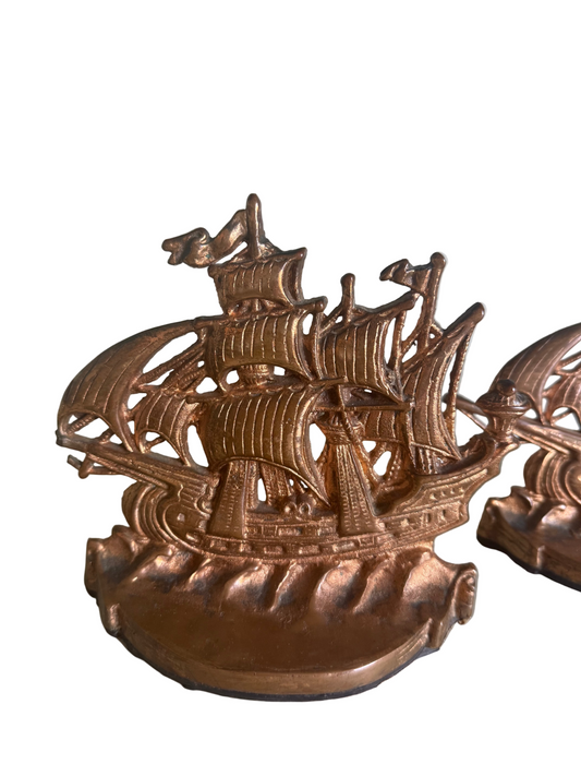 Vintage Brass Sailing Ship Bookends