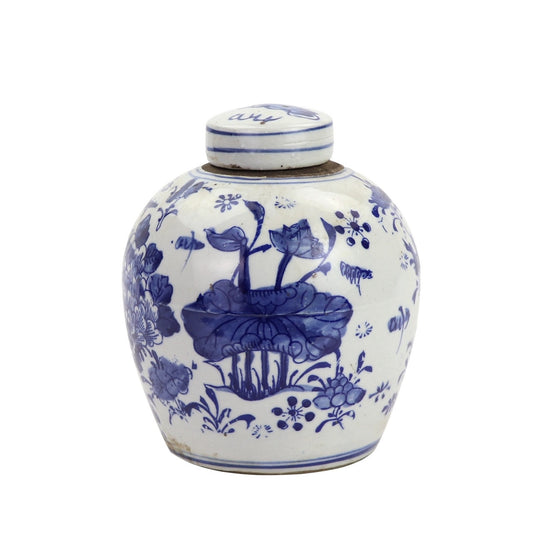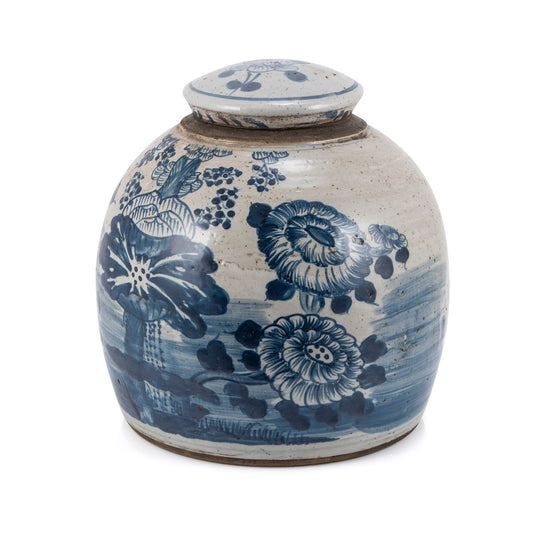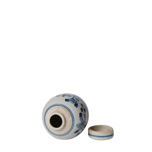 Blue and White Porcelain Mini Peony Floral Round Jar