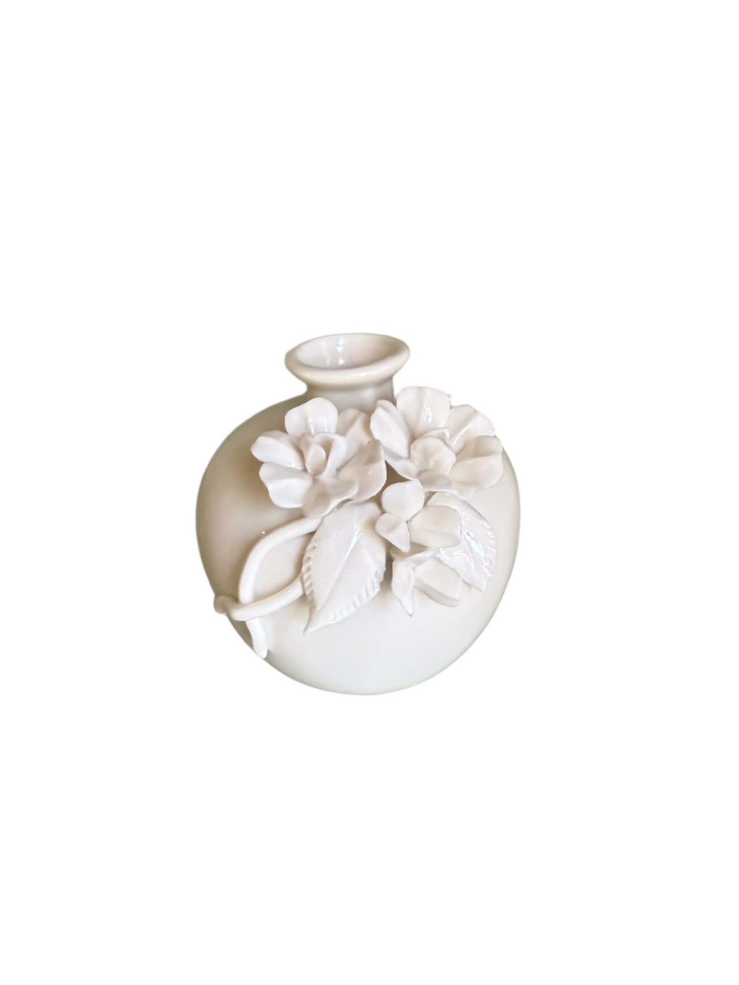 The Sculpted White Flower Vase merges chic design with refined elegance. Its sleek, sculptural form and pristine white finish offer a sophisticated canvas to display your favorite flowers or enhance your décor with a modern, understated flourish.