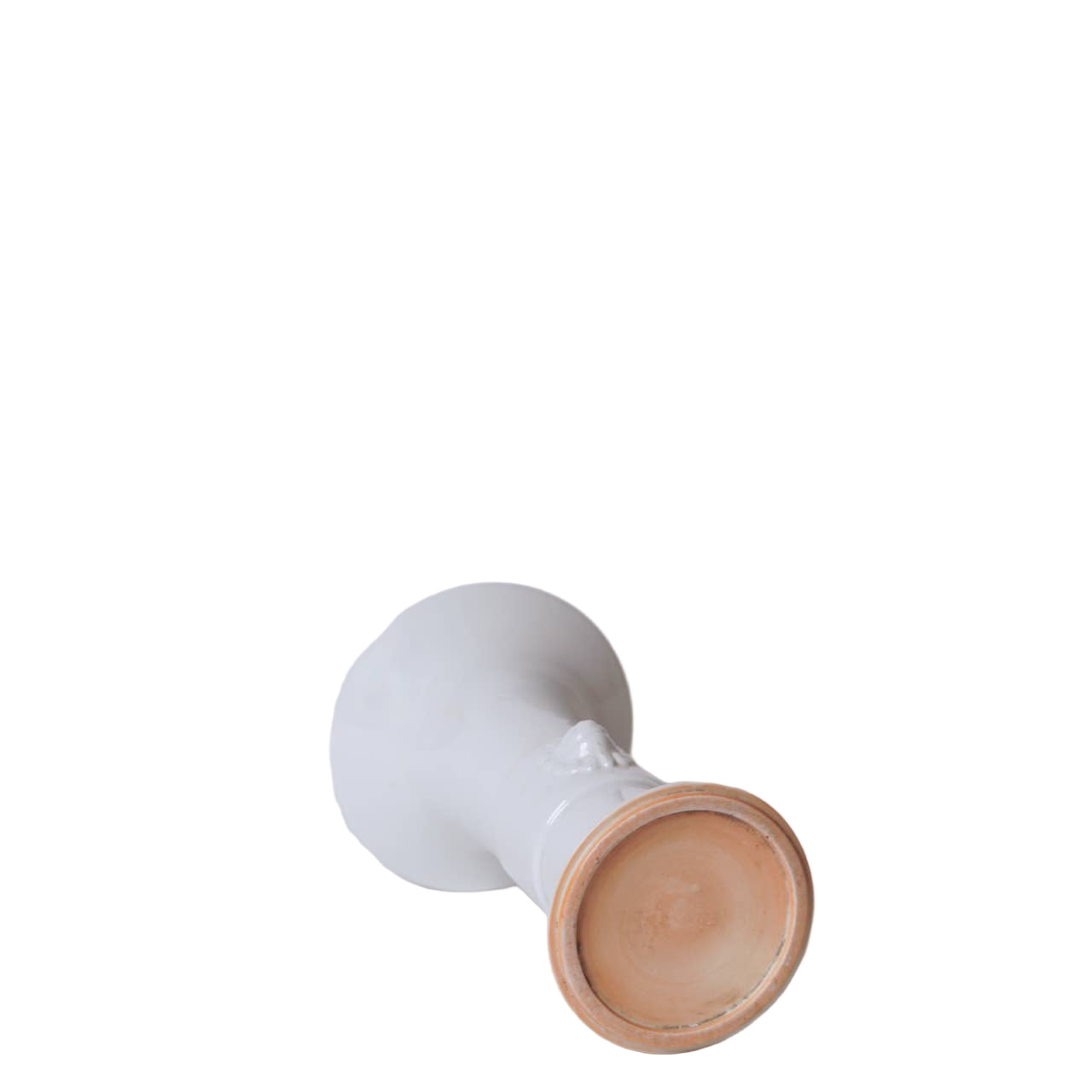 This piece is a traditional, delicate baluster shape with unique sprigged lion heads adorning the middle of the vase, 6" W x 10 1/2" H. There are five related vases in this series, all in a style reminiscent of the early 20th century, yet hearkening back through the dynasties too.